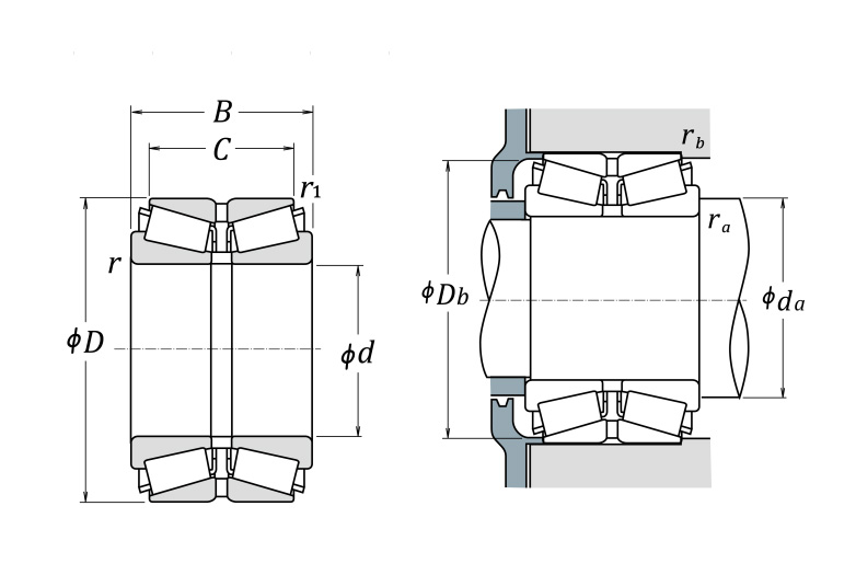Send Inquiry model Dimensions (mm) Cr C0r Grease Oil (Oil-bath) da (min.) rb (max.) Db (min.) ra (max.) e Y2 Y3 Y0 (approx.)